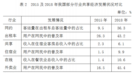 2015~ 2018年,我國共享住宿、餐飲在線外賣和網(wǎng)約出租車的收入年均增速分別為45.7%、117.5%和35.3%;上述 三個共享新業(yè)態(tài)對其所屬整個行業(yè)增長的拉動作用分別為每年1.6、2.1和1.6個百分點。