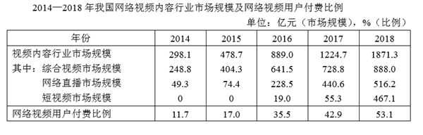 89、關(guān)于我國(guó)2018年短視頻市場(chǎng)的發(fā)展,不能從上述資料中推出的是: