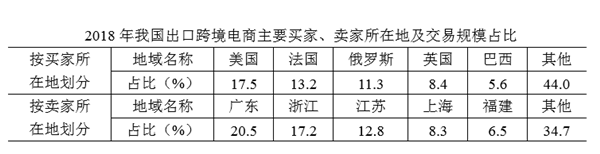 A. 2018年,我國(guó)江浙滬地區(qū)占全國(guó)出口跨境電商交易規(guī)模的比重超過1/3