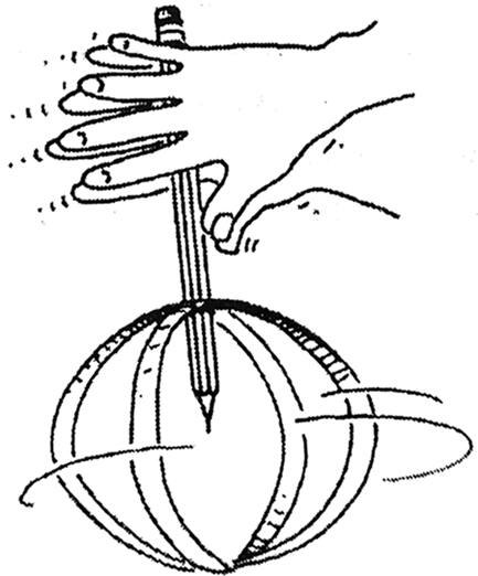 當(dāng)紙條旋轉(zhuǎn)起來之后,球體的頂端和底端會(huì)變得稍扁,而中間部分則略為鼓起。